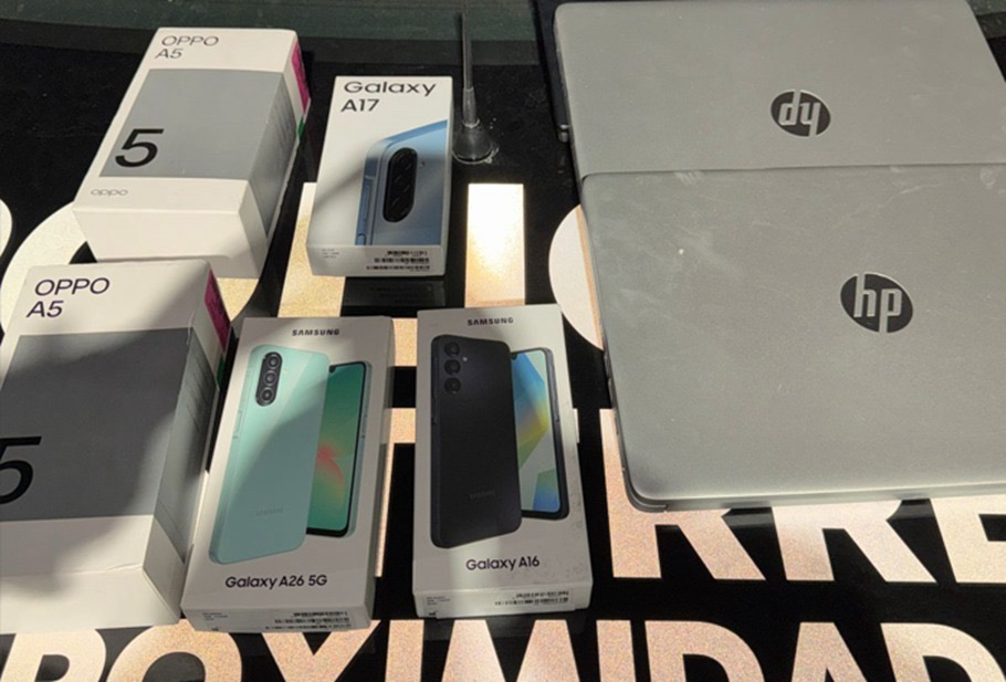 Durante la inspección, le localizan cinco cajas con celulares de diversas marcas, dos laptops HP y otra Thinkpad, así como un mazo con el cual realizó el robo tipo “boquetazo” en la pared y se introdujo por el ducto del aire acondicionado.
