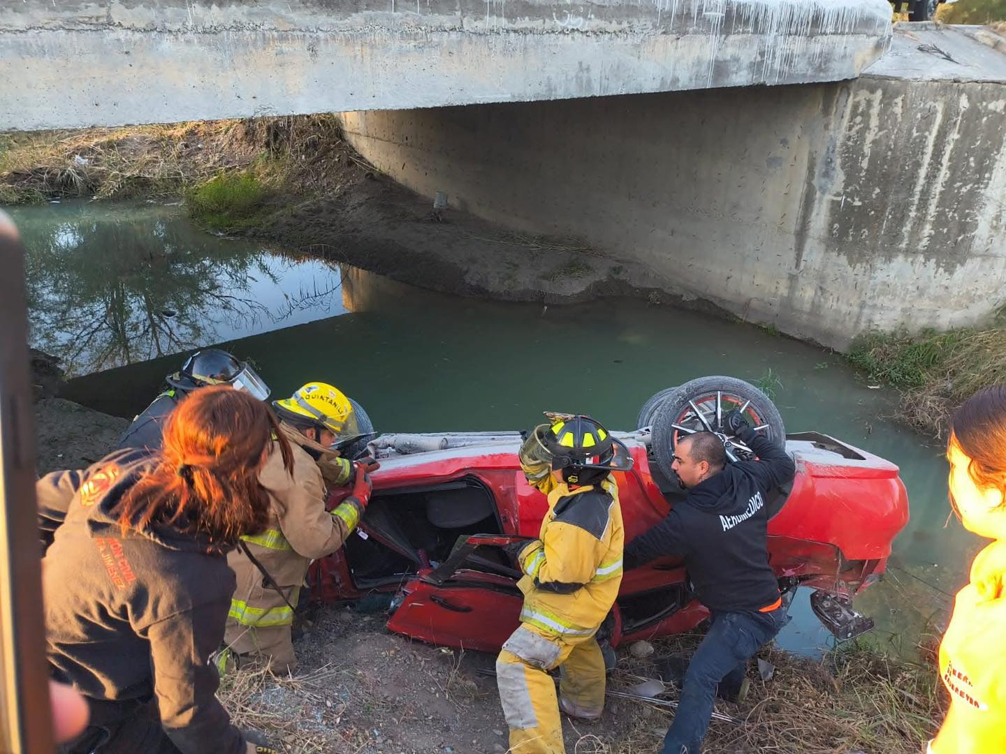Cadereyta, Nuevo León a 12 de noviembre del 2025.- Tremendo susto se llevaron los tres ocupantes de un auto al volcar y caer dentro de un arroyo en la colonia Salinas de Gortari hacia el Libramiento Oriente.